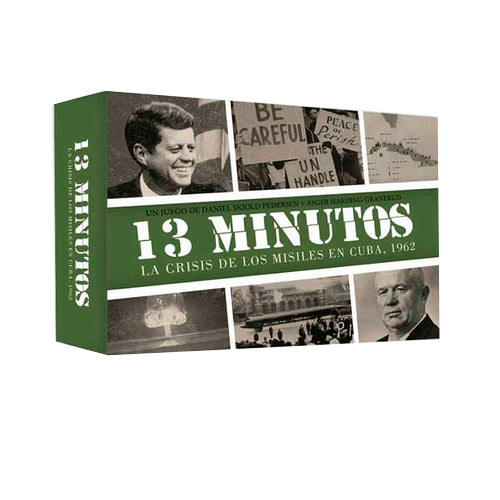 13 Minutos es un juego con motor de cartas en el que los jugadores se pondrán en la piel del Presidente Kennedy y del Primer Ministro Khrushchev con el objetivo de emerger de la crisis de los misiles en Cuba como la superpotecia mas poderosa.
