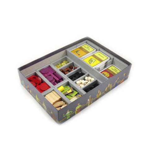 Este inserto está diseñado para ser compatible con Agricola Edición Revisada. El diseño proporciona tanto un almacenamiento eficiente como un juego mejorado. Todas las bandejas pueden utilizarse durante el juego. Las reglas y los tableros actúan como una tapa en la parte superior de las bandejas.