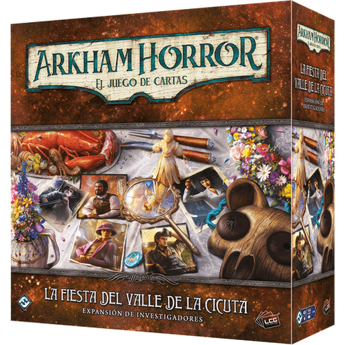 Los horrores desconocidos pueden aparecer sin previo aviso, ya sea desde las profundidades terrestres o del cosmos infinito. Los terrores indecibles tienen todo tipo de formas y tamaños, y la amenaza que suponen puede pasar completamente desapercibida en muchas ocasiones hasta que es demasiado tarde. Sólo unos pocos valientes de agudo intelecto, instinto de supervivencia perfeccionado o simple y llana suerte pueden enfrentarse a estos horrores antes de que nos consuman a todo. La expansión de investigadores La fiesta del Valle de la Cicuta presenta 5 investigadores nuevos y multitud de nuevas cartas de Jugador y opciones para el juego, incluidas nuevas cartas enlazadas y cartas que emplean fichas de Bendición y de Maldición. Usa la herramienta más apropiada para cada trabajo como Wilson Richards, el manitas; crea el laboratorio definitivo como Kate Winthrop, la científica; usa la labia para escapar de los peligros como Alessandra Zorzi, la condesa; lleva el equilibrio al caos como Kōhaku Narukami, el folclorista; y lánzate al peligro de cabeza para proteger a los demás como Hank Samson, el granjero. Esta expansión se puede emplear para crear o potenciar mazos de investigador para cualquier escenario o campaña de Arkham Horror: El juego de cartas.