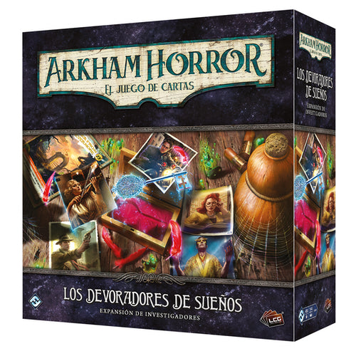 La expansión de investigadores Los devoradores de sueños se puede emplear para crear o potenciar mazos de investigador para cualquier escenario o campaña de Arkham Horror: El juego de cartas.