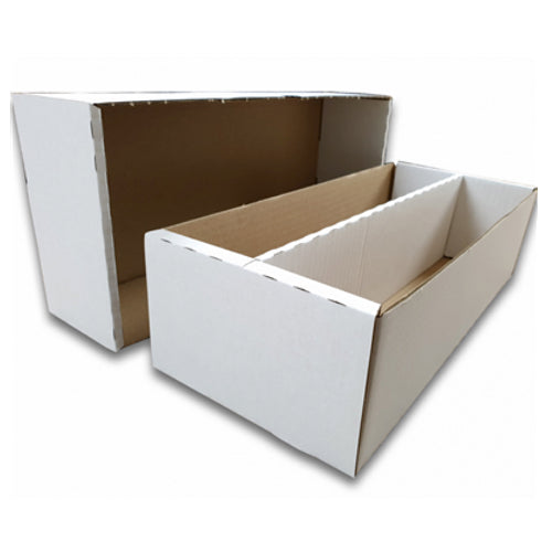 Ideal para almacenar cartas de tamaño estadar, esta fabricada de carton y terminada en blanco.Su diseño cuenta con mejoras frente a las cajas convencionales que hay en el mercado,su fondo plano y el corte lateral facilitan el poder pasar las cartas de forma comoda. Tiene capacidad para guardar 2000 cartas.
