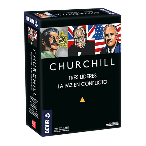 Churchill es un juego para tres jugadores de Cooperación y Competición. Los jugadores deben cooperar para ganar la 2ª G. M., a la vez que intentan conseguir la mejor posición posible tras la guerra frente a sus aliados. Si los jugadores no consiguen derrotar al Eje, todos pierden, pero si se derrota al Eje solo habrá un ganador de la paz. También se incluye una variante para dos jugadores y otra para jugar en solitario.