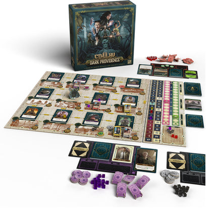 Cthulhu: Dark Providence es un juego de tablero competitivo en el que los jugadores se dividen secretamente en distintos bandos de un conflicto sobre el destino de una nación al borde de la ruina. Los jugadores utilizan su influencia para pujar por el derecho a reclamar bienes, tomar el control de ciudades y conspirar con poderosas entidades de los Mitos. Para mantener la cordura y el secreto, los jugadores realizan diversas acciones, como reclutar agentes, eliminar rivales, bloquear oponentes y sellar o proteger puertas a dimensiones ultraterrenas para avanzar en su agenda y ganar puntos. A pesar de estar divididos en bandos opuestos, ¡sólo el jugador con la mayor puntuación de la facción líder conseguirá la victoria y marcará el destino de la nación!