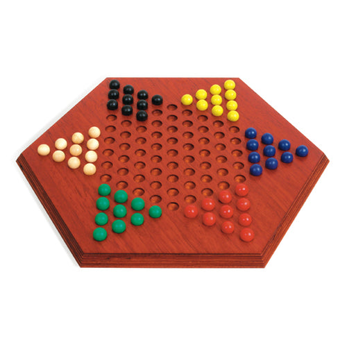 Juego de damas chinas fabricado en palo rojo con fichas en madera de haya de 360 x 360 x 25 mm
