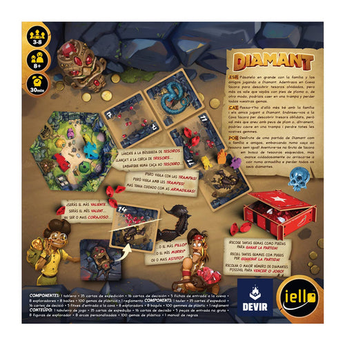 En Diamant pondremos a prueba nuestra suerte y deberemos decidir paso a paso si queremos adentrarnos cada vez más en la cueva para obtener diamantes, o si es el momento adecuado para dar media vuelta y volver al campamento antes de que sea demasiado tarde.