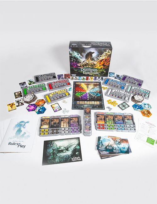 Dwellings of Eldervale es un juego altamente modular que se puede personalizar de muchas formas. Además de la flexibilidad que ofrece la selección de facciones, la elección de Monstruos y las opciones de cartas, puedes añadir Mercenarios, la Ruina de Oráculo, la mini-expansión Madre de Dragones y la mini-expan- sión Gigante de la Escarcha (edición Legendaria).