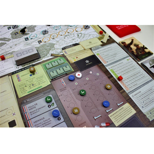 La Fortaleza de Hegra es un juego solitario con una duración estimada de 70-90 minutos que puede recordarte a juegos como Robinson Crusoe, This War of Mine y Dead of Winter. Las mecánicas principales son la de colocación de trabajadores, bag building y control de áreas, aunque también tiene elementos de forzar la suerte.
