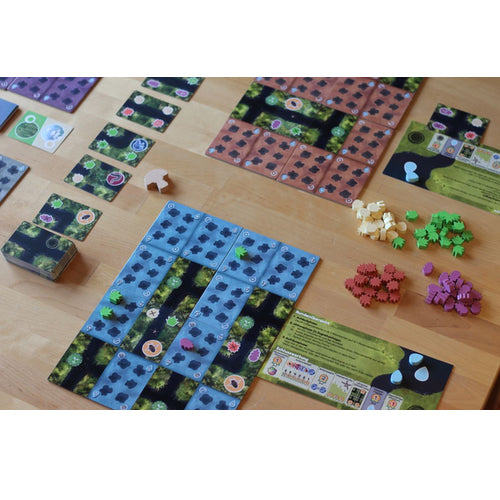Crea hábilmente una red de canales de agua por la que «fluyan» tus fichas de planta a todos los rincones de tu humedal. Si lo haces bien, podrás jugar las mejores cartas y crear un ecosistema más provechoso que los de tus oponentes.