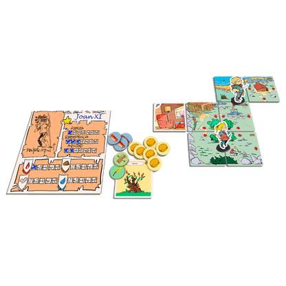 Reglamento, dado, 4 peones y 26 contadores, 168 cartas de aventura y mapa, 53 cartas de eventos y 4 fichas de jugador