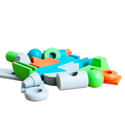 66 Piezas de madera, 81 Cartas, 1 Cinta métrica, 95 Fichas, 1 Reglamento