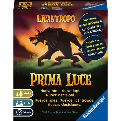 Licántropo: Prima Luce es un juego de cartas rápido y emocionante que nos trae un montón de nuevos personajes únicos con los que disfrutar como nunca a las partidas de Hombre Lobo. ¡Los licántropos han regresado con más ganas de morder que nunca!