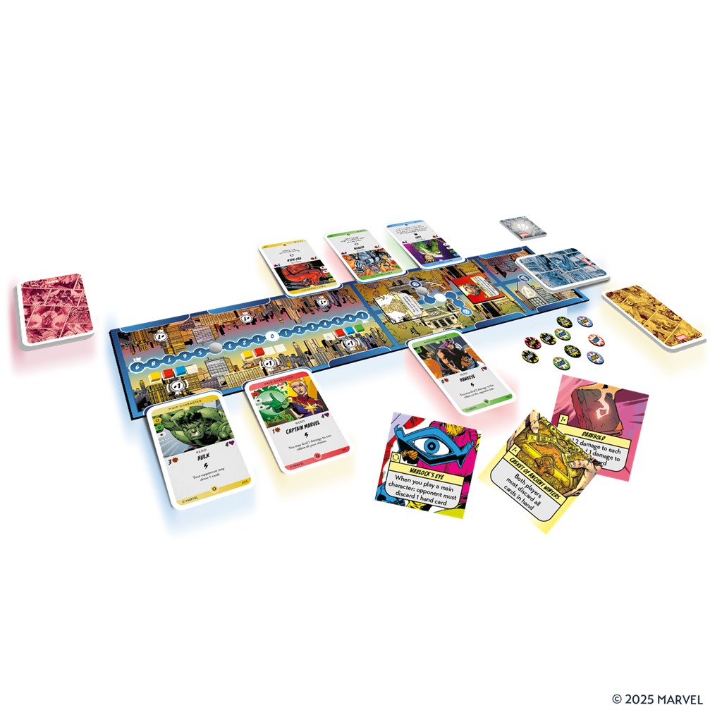 Únete a la facción de los Héroes o de los Villanos y pugna por el control de la ciudad jugando tus cartas con inteligencia, aprovechándote de las debilidades de las cartas de tu oponente, recogiendo artefactos valiosos o haciéndote con lugares de importancia estratégica. ¡Gana la partida!