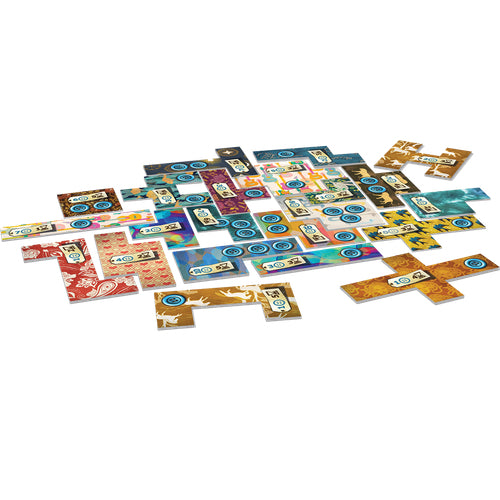 1 tablero de Tiempo, 2 tableros de Colcha, 2 contadores de Tiempo, 1 peón Neutral, 33 Parches, 5 Parches especiales. 1 pieza Especial, 50 Botones, 24 cartas de Automata y 2 reglamentos.
