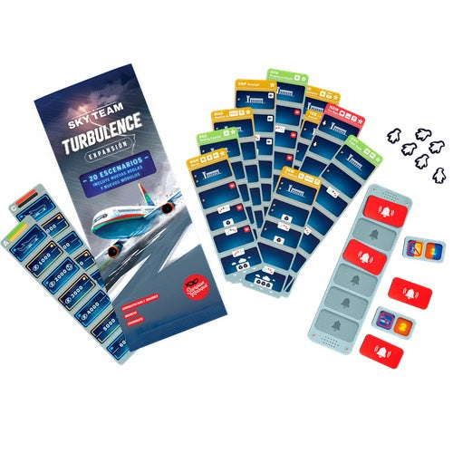 Toma asiento en la cabina y pon a prueba tus habilidades en 20 escenarios aún más exigentes. Turbulence introduce nuevas reglas y nuevos módulos, como Turbulence, Low Visibility y Alarms, que añadirán profundidad y diversidad a tu juego base Sky Team.