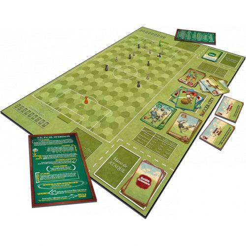 Soccer City es un juego de estrategia en el que los jugadores dirigen un equipo con el lógico propósito de meter más goles que el contrario. Tiros a puerta, paradas, entradas, pases, regates, saques de esquina, faltas, amarillas, expulsiones y casi cualquier acontecimiento que ocurre en un campo de fútbol viene reflejado en este juego. En nuestro turno tendremos que decidir como desplazar los jugadores y que acciones realizar dentro de las posibilidad que nos ofrezcan las cartas que tenemos en la mano.