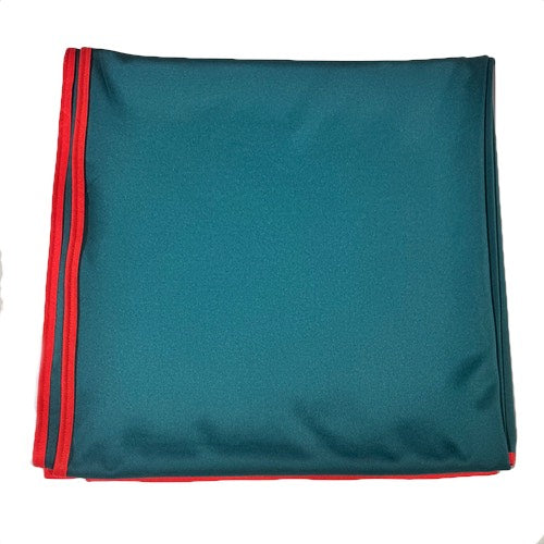 Tapete de 150 x 160 cms fabricado en 89% Poliéster 11% Spandex con el reborde rojo para todo tipo de juego de cartas y proteger la superficie de juego.