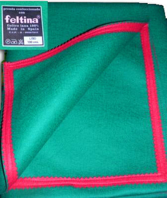 Tapete de 130x130 cms fabricado en algodón verde con el reborde rojo para todo tipo de juego de cartas y proteger la superficie de juego.