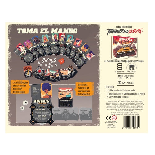 Thunder Road: Vendetta es un juego de turnos rápidos y decisiones arriesgadas. Dirige a tu equipo mientras recorren peligrosas carreteras, esquivan peligros, chocan contra coches y disparan sus armas. Y cuando todo lo demás falle, ¡llama al helicóptero!