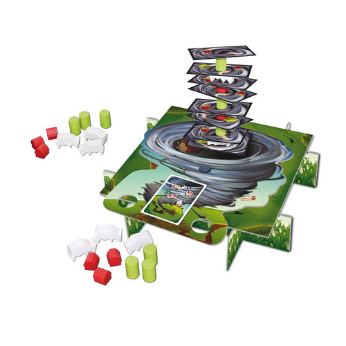 Un poderoso tornado hace peligrar las granjas de los jugadores. El jugador que quede con la granja más valiosa al final del juego ganará. En Tornado Ellie los jugadores empiezan con tres árboles, tres vacas y tres granjas. En su turno los jugadores tienen que jugar una carta de tal manera que sea del mismo tipo de animal que la anterior o de diferente tipo, pero en este caso el número de animales dibujados en la carta tiene que ser mayor y después tiene que mover el tornado hasta que su base apunte al siguiente jugador. Además hay cartas con efectos especiales como la nube, el relámpago o las cartas que contienen un solo animal dibujado. En caso de no poder jugar una carta válida los jugadores tendrán que colocar árboles, vacas o granjas formando una torre, en función de lo que le indique la carta. Si esta torre se cae al desplazar al tornado hacia el siguiente jugador el resto de jugadores podrán recuperar una ficha de vaca, árbol o granja. La partida acaba cuando se acaba el mazo de robar o cuando uno de los jugadores no puede colocar las piezas de granja en el tornado que le indican.